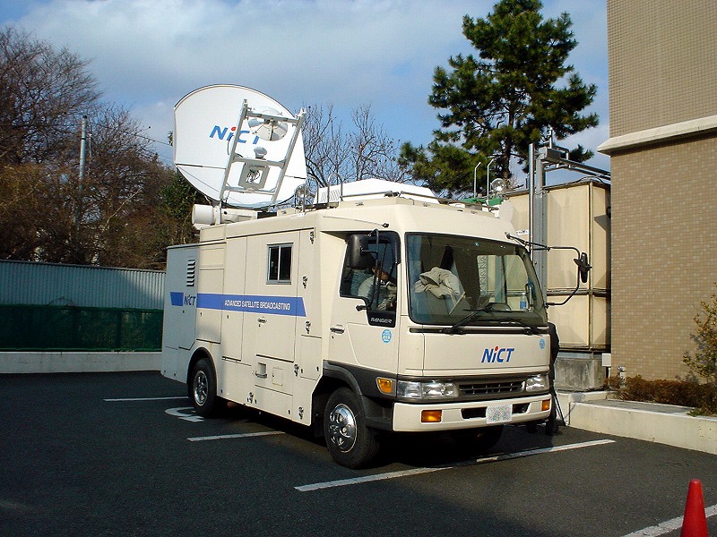 リアルタイムに3D合成された映像はH.264にエンコードし、超高速インターネット衛星WINDS(きずな)を介して神戸国際展示場に伝送しました。